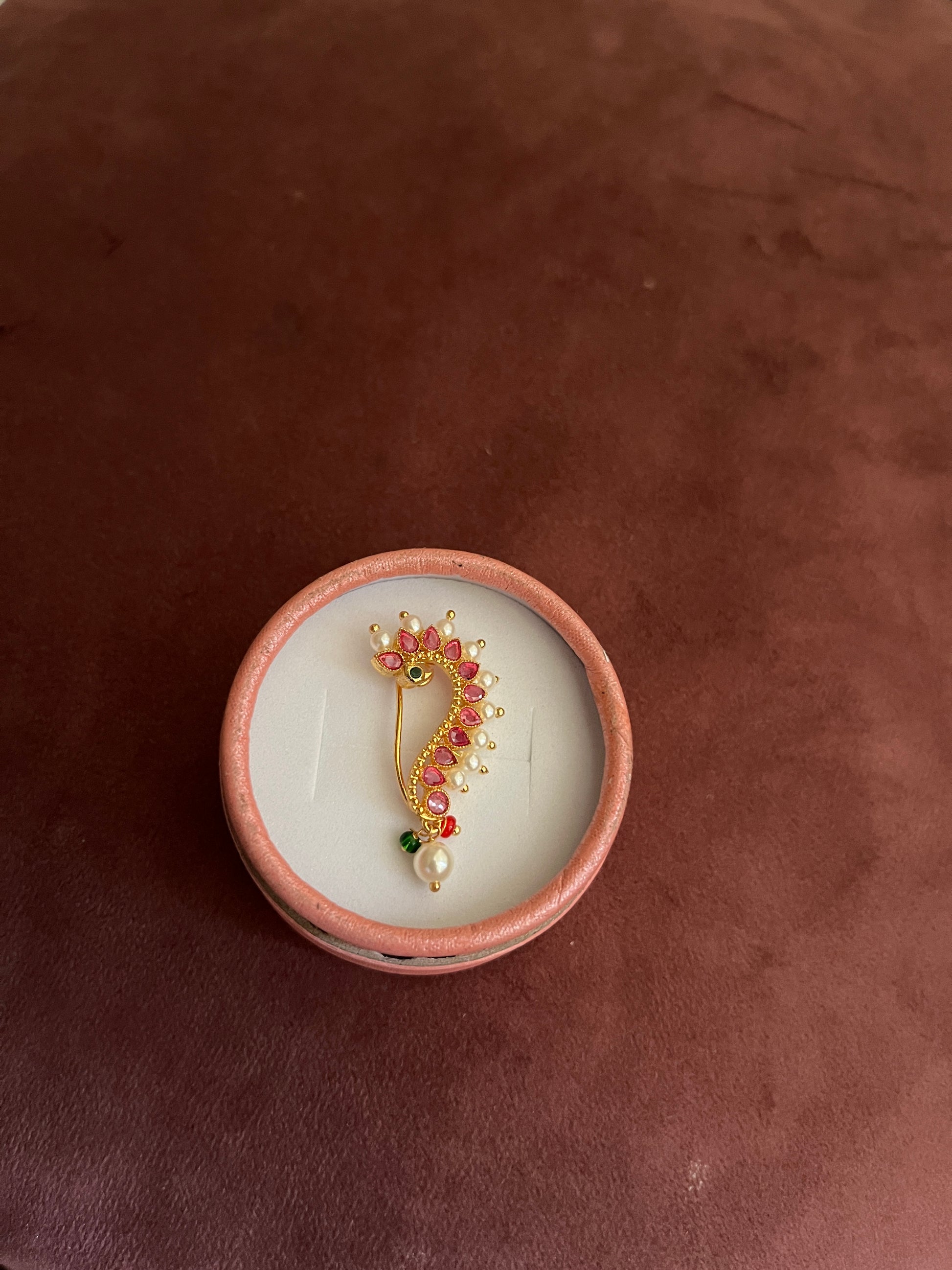 MAHARASHTRIAN PEARL RUBY STONE NATH WITH GOLD PLATED