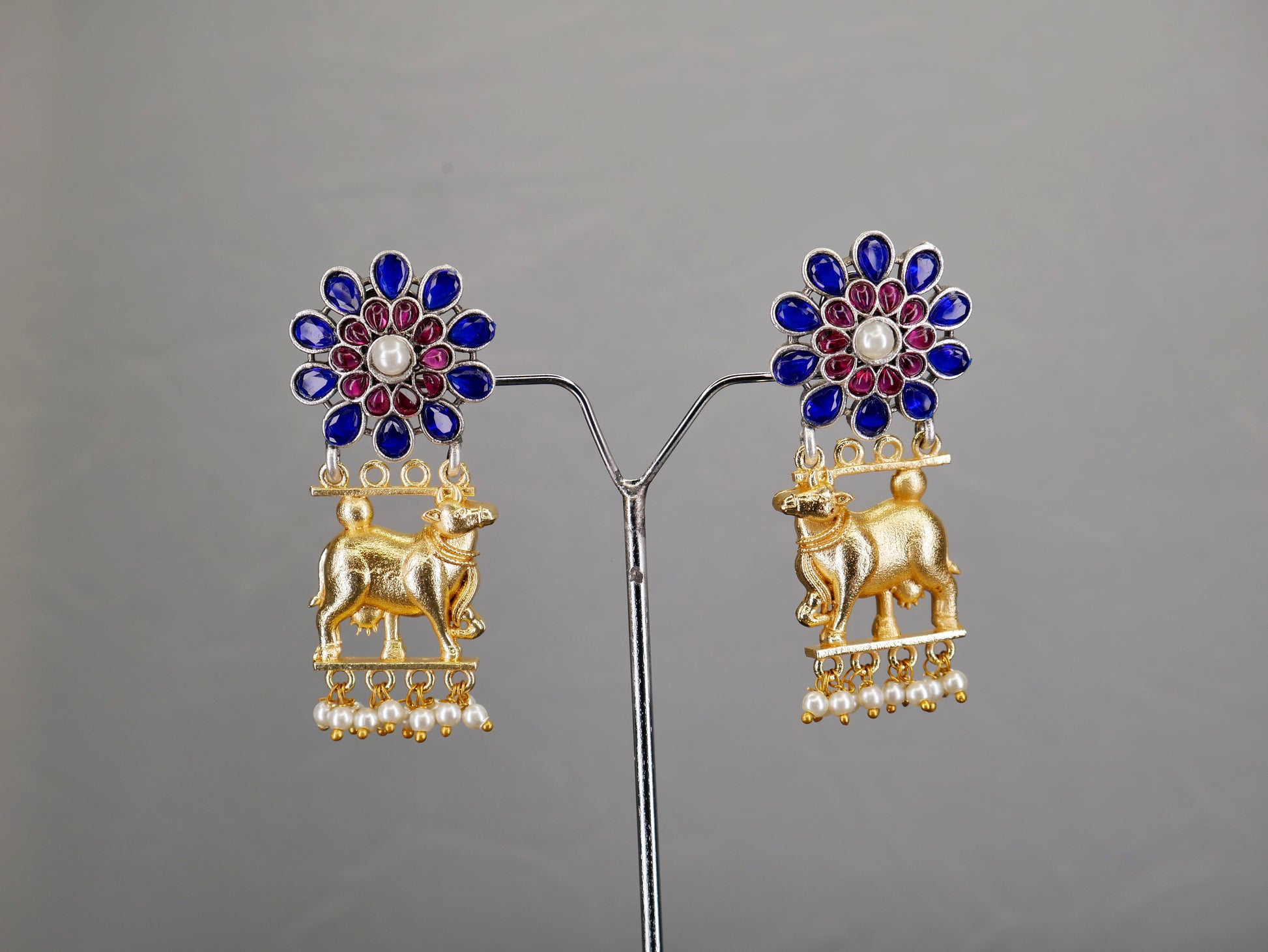 Rooted in tradition yet strikingly bold, our Nandi earrings are a perfect fusion of heritage and style. Designed in a beautiful dual-tone silver oxidised finish, this piece stands out with its unique violet accents that add a fresh, artistic touch.