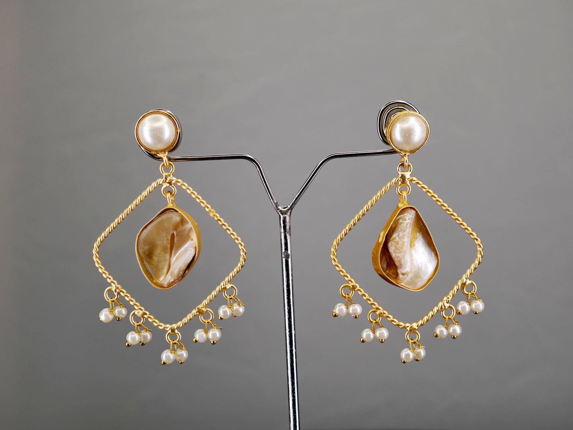 MOP Golden Brass Pearl Danglers