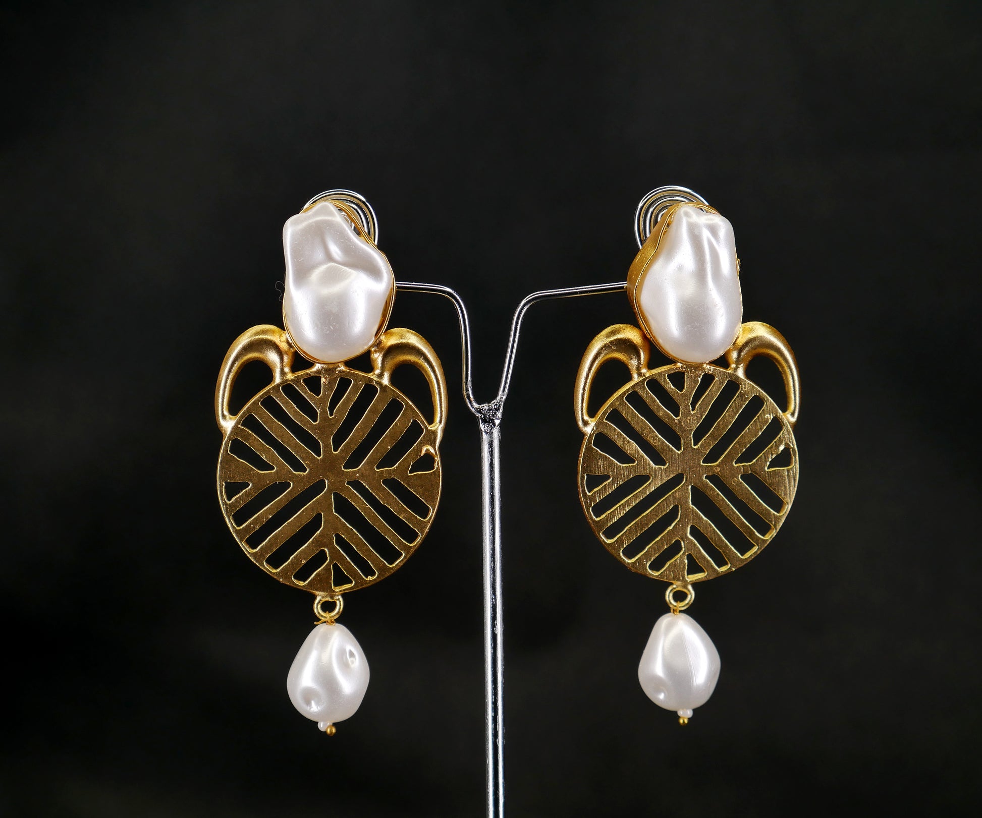 RAW MOTHER OF PEARL INDO-WESTERN GOLDEN BRASS EARRING